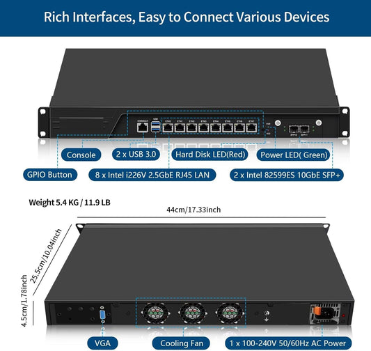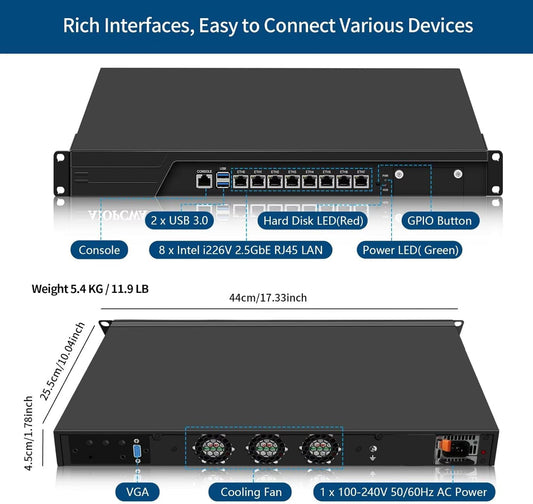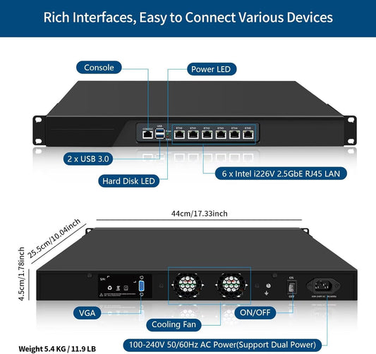 CWWK 1U Firewall Appliance N305/N100, 6 x i226-V 2.5GbE LAN Firewall Hardware VPN Router PC, DDR5 8GB RAM 128GB SSD OPNsense Hardware 19”Rackmount for Homelab Server with VGA, SIM