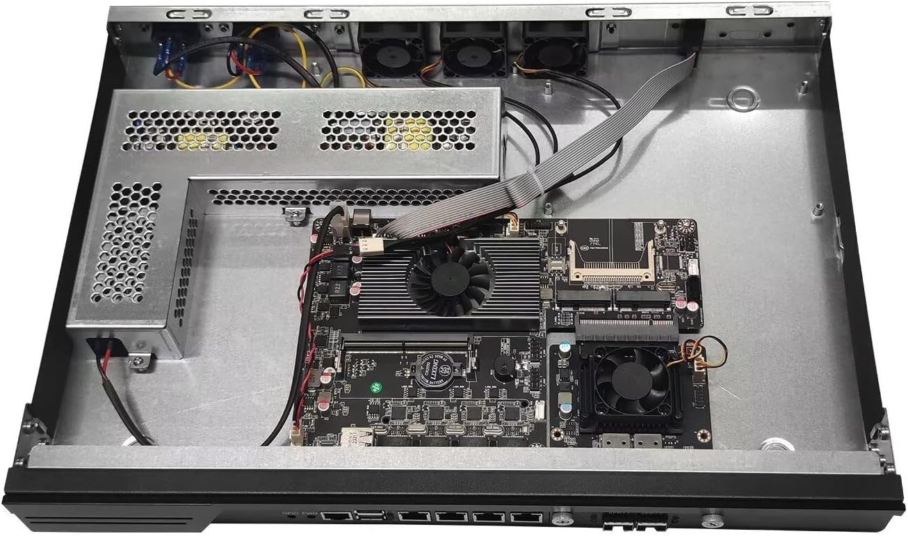 - Interfaces: 2 × SFP+ Intel 82599ES 10 Gigabit, with measured transfer speed up to 4.8Gbps. 4 × Intel i226V 2.5GbE Ethernet ports with 100M/1G/2.5G adapting RJ45, supporting 100M/1G/2.5Gbps transmission bandwidth. The measured transfer speed can be more than 1Gbps at maximum. 1 × USB3.0 port, 1 × USB2.0 port, 1 × CONSOLE port and 1 × VGA video output port.